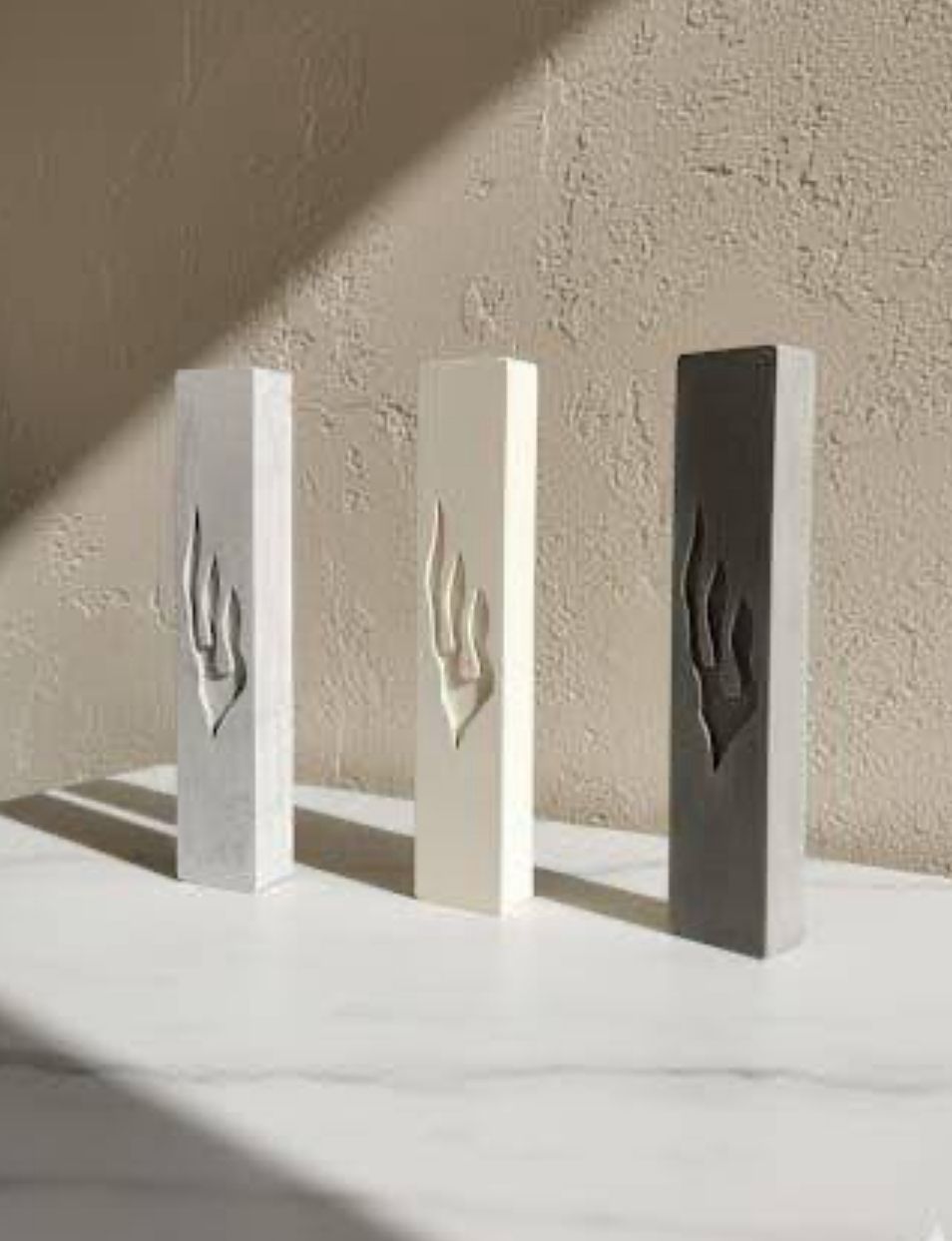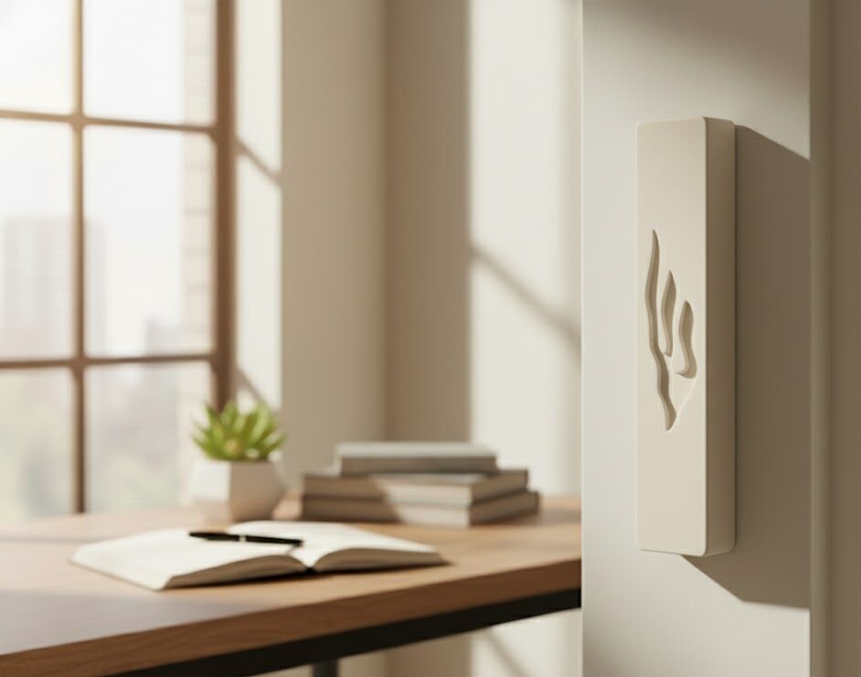 בית מזוזה עשוי יציקה מינרלית בגימור קטיפתי, הנעשה בעבודת יד אצלנו בסטודיו.