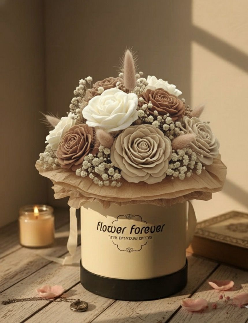 הכניסו לביתכם מגע של יופי נצחי ואווירה רגועה עם סידור פרחי השעווה המיוחד שלנו, המשלב אמנות, טבע ואור חם.