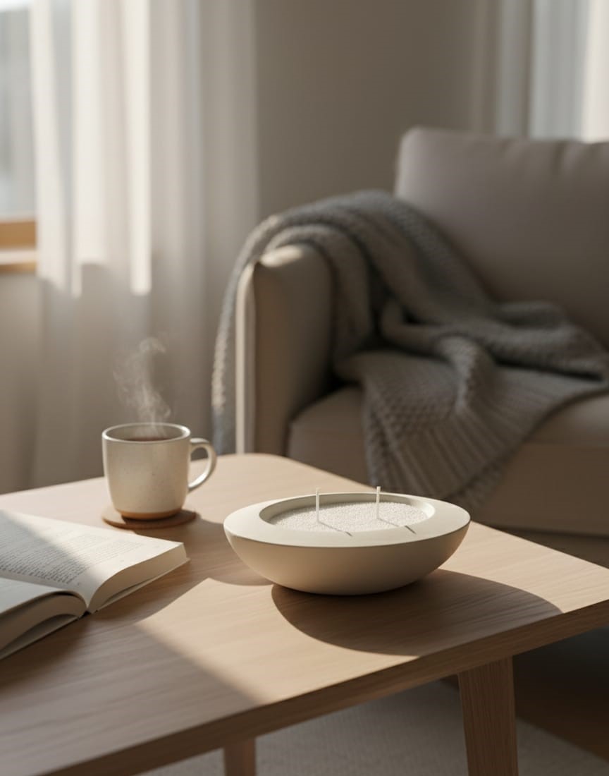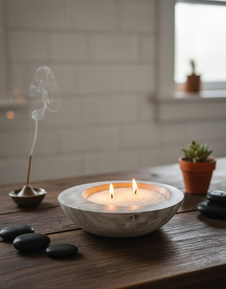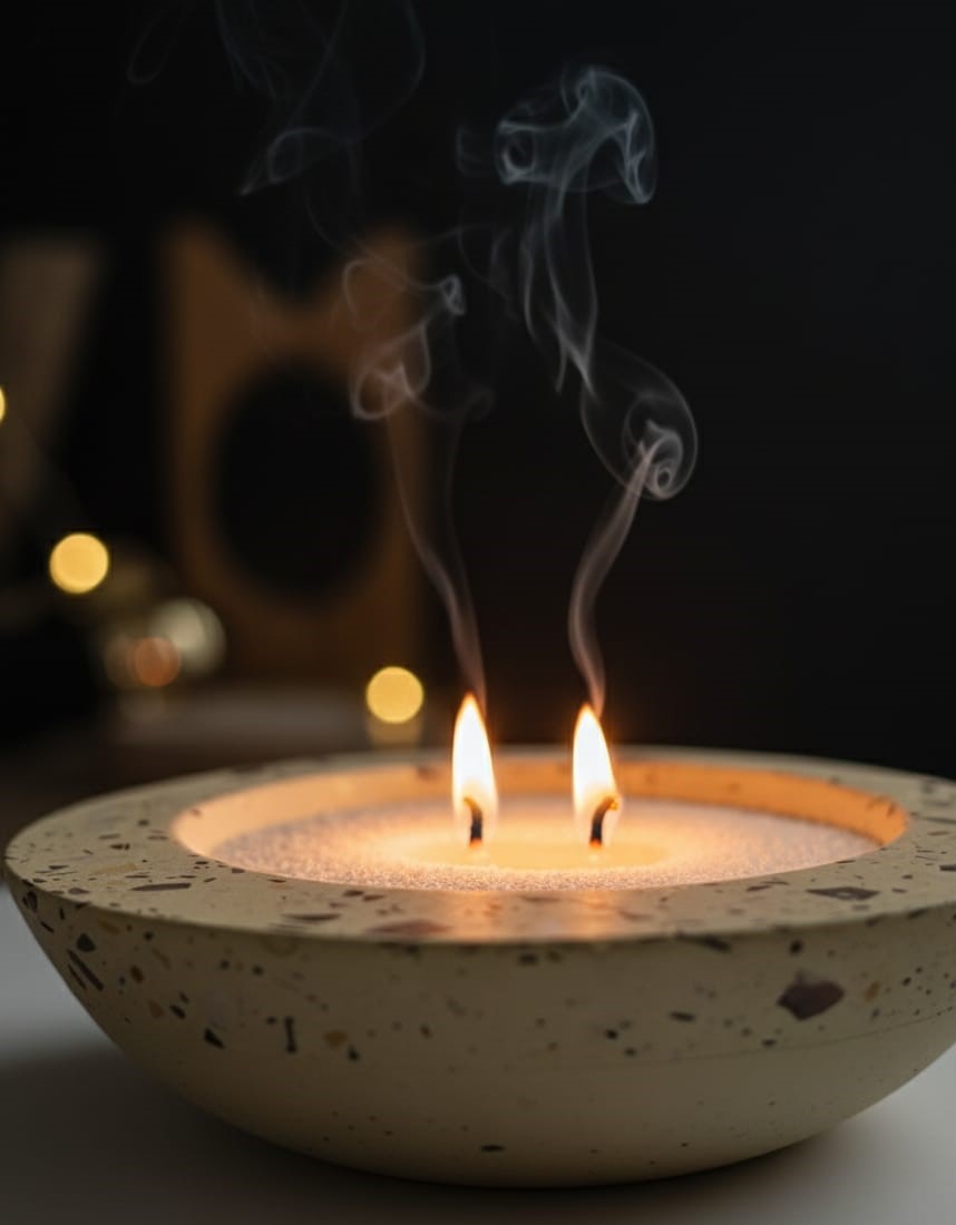 נר "זן נורדי" הוא שילוב מושלם בין עיצוב מינימליסטי וטקסטורה טבעית.