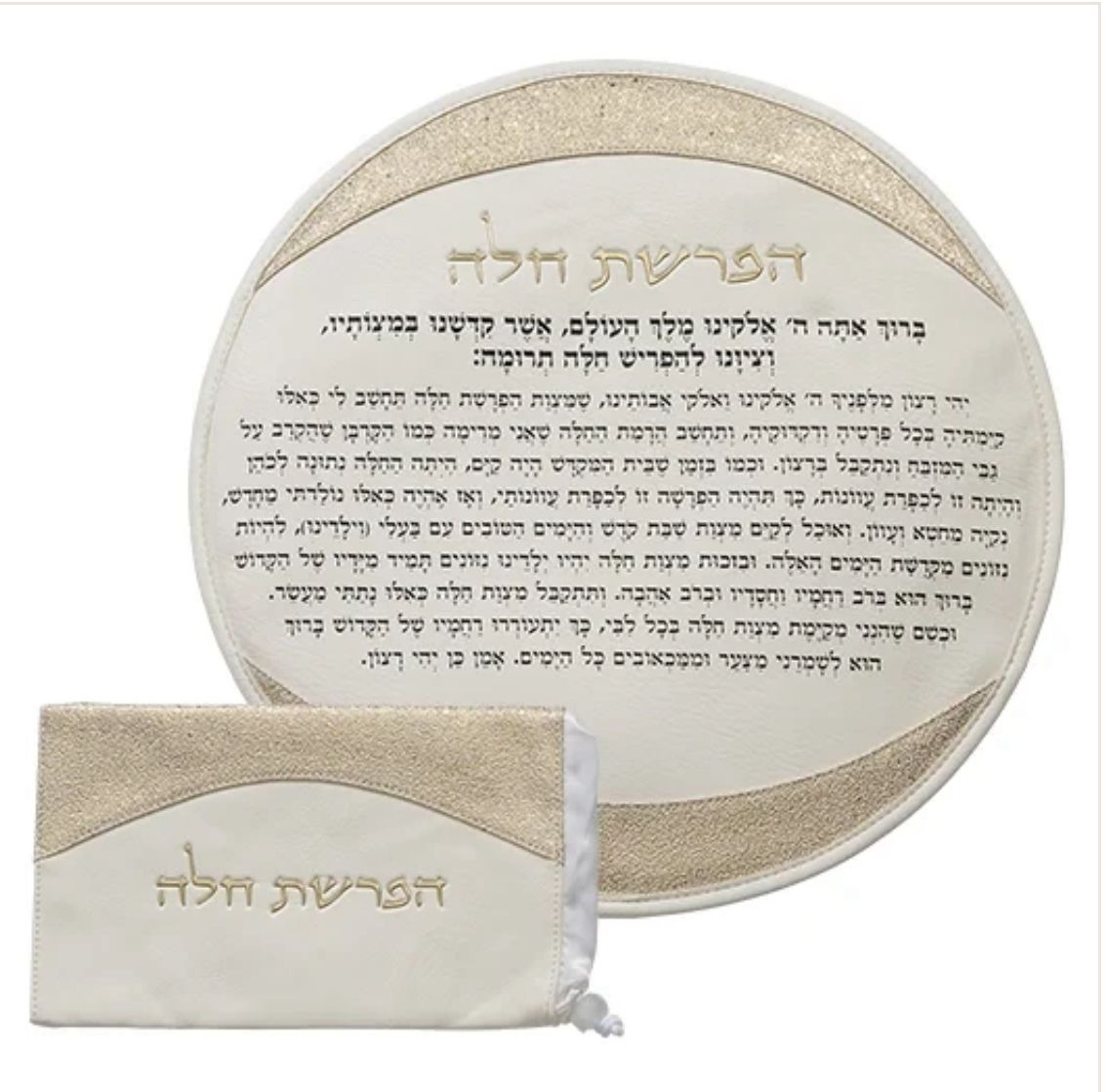 סט הפרשת חלה דמוי עור לבן "אותיות בולטות" זהב 40 ס"מ * 17 ס"מ