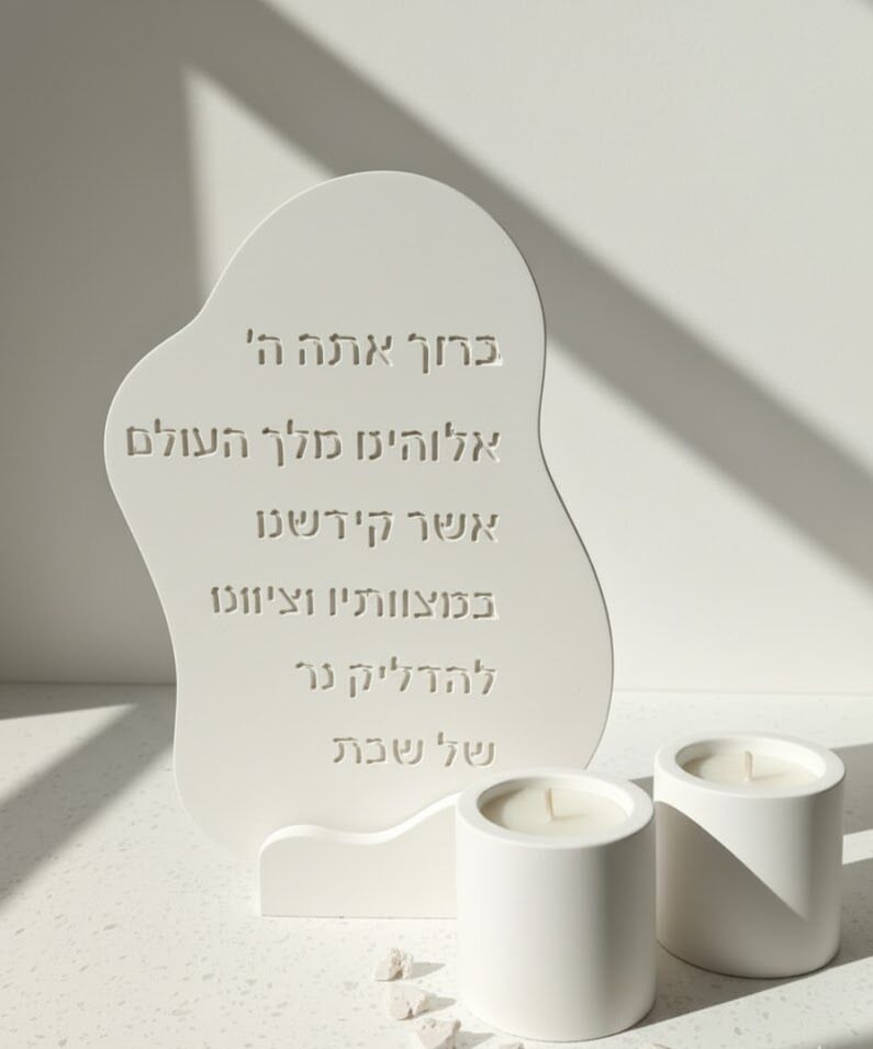 הפכו את רגע הדלקת נרות השבת למעמד מרגש, חגיגי ומלא משמעות עם סט פמוטים וברכת הדלקת נרות מעוצבים בעבודת יד. פריט זה אינו רק סט, אלא יצירת אומנות שתכניס אור, שלווה ויופי אל הבית כולו.
