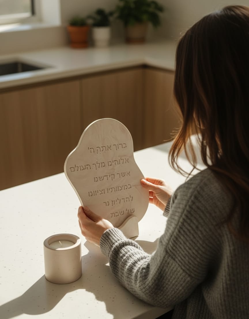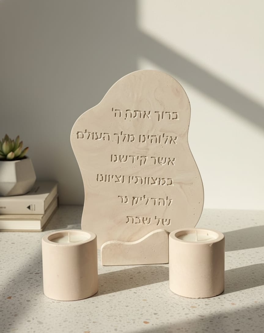 הפכו את רגע הדלקת נרות השבת למעמד מרגש, חגיגי ומלא משמעות עם סט פמוטים וברכת הדלקת נרות מעוצבים בעבודת יד. פריט זה אינו רק סט, אלא יצירת אומנות שתכניס אור, שלווה ויופי אל הבית כולו.